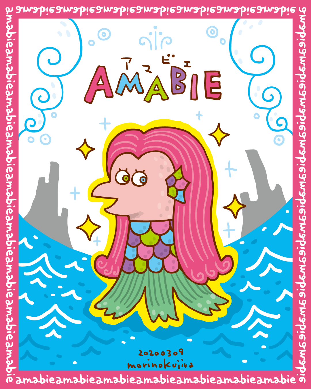 「もし疫病が流行することがあれば、私の姿を描いた絵を人々に早々に見せよ」と告げたアマビエさんを描いたら、扶桑社さんの『みんなのアマビエ』に収録いただきました。