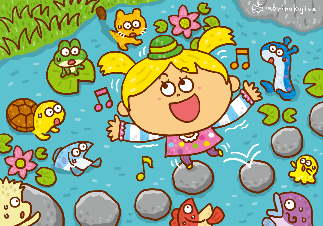 「飛石渡る女の子」
