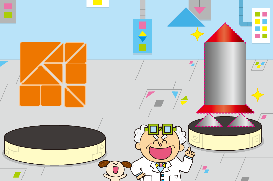 ツクール博士といっしょにさんかく・しかくでいろんな形をつくるタングラムのページです。