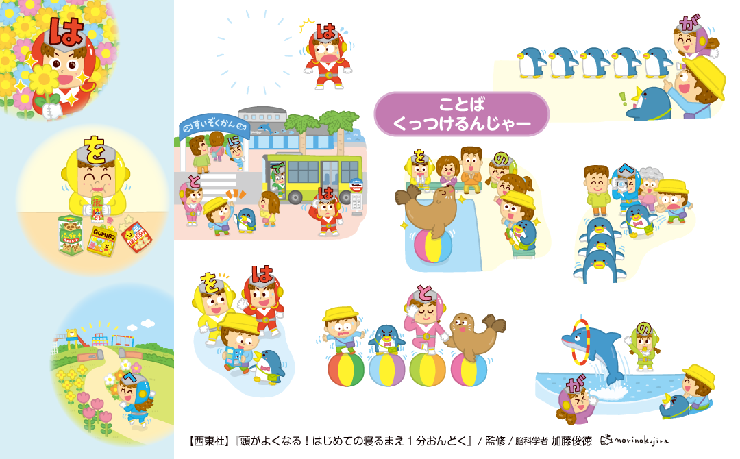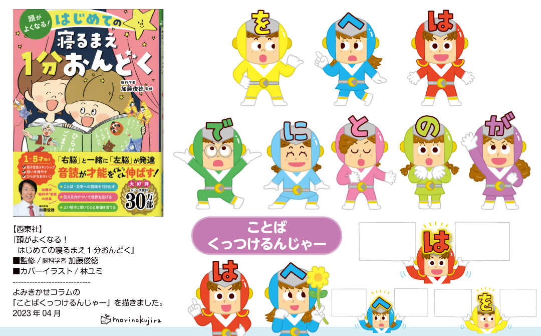 よみきかせコラム「ことばくっつけるんじゃー」のイラストを描きました!