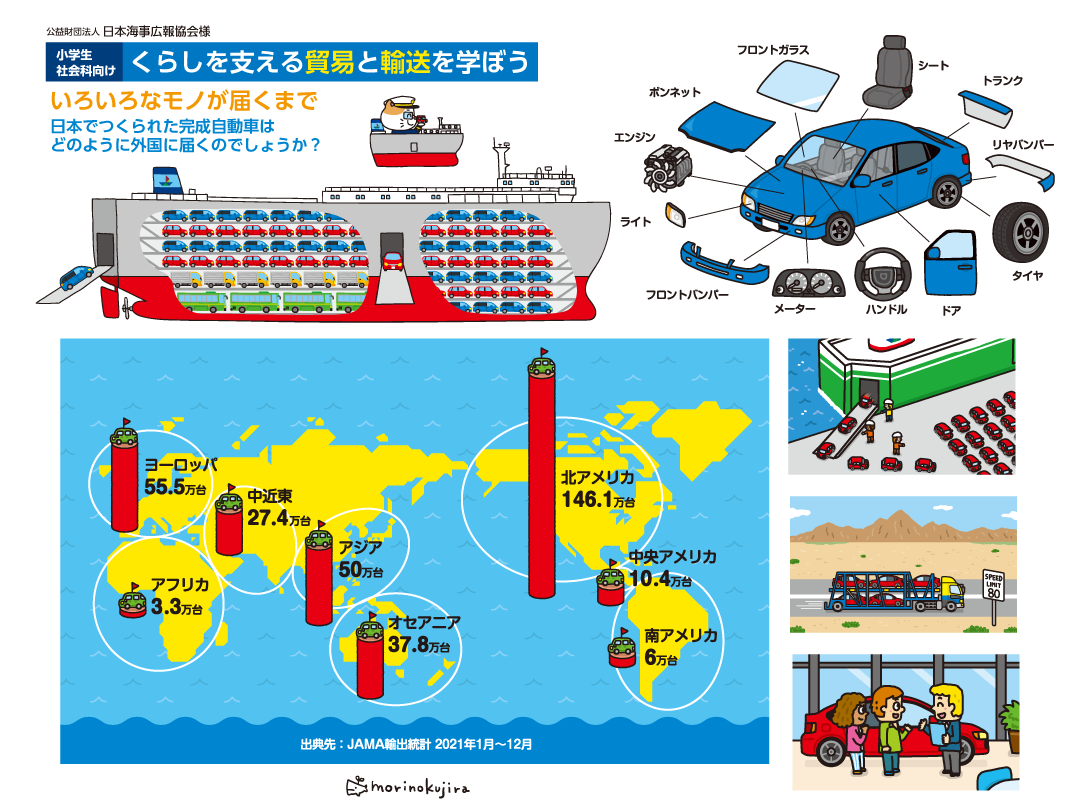 【教材イラスト】日本海事広報協会『小学生社会科向け くらしを支える貿易と輸送を学ぼう』