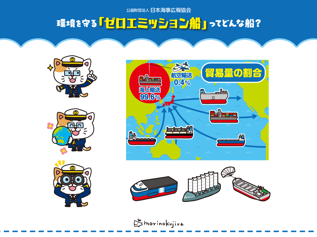 【教材イラスト】日本海事広報協会『環境を守る『ゼロエミッション船』ってどんな船?』