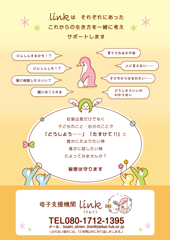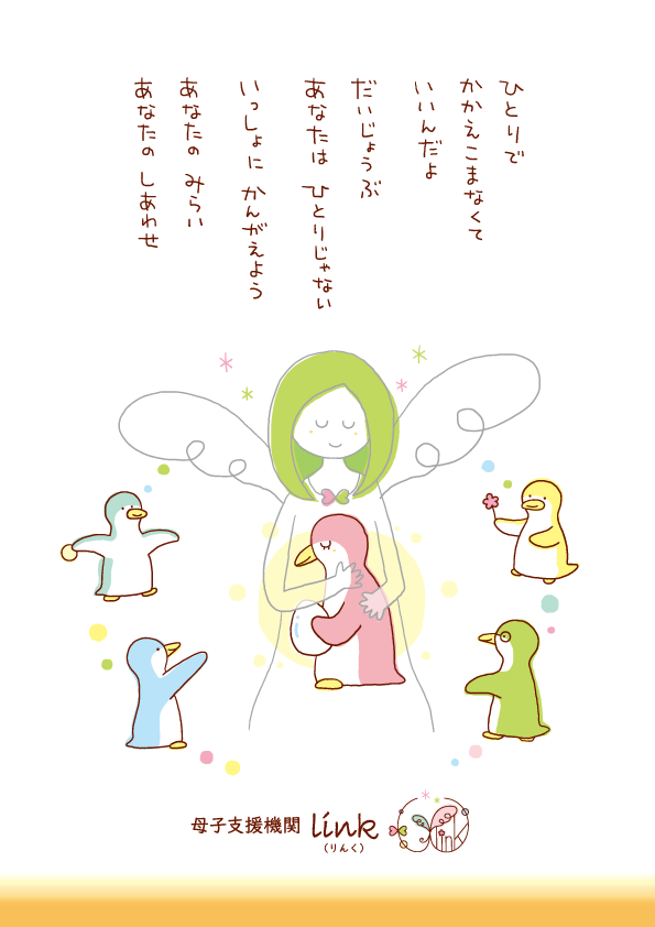 母子支援機関linkさんのロゴマーク・フライヤー・ミニカードのデザイン・イラストを制作しました。