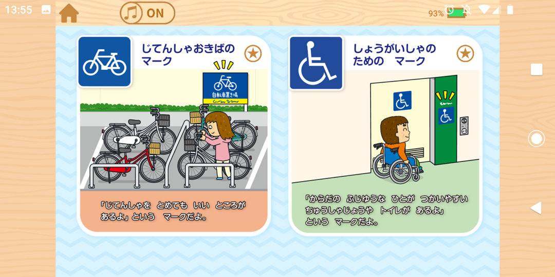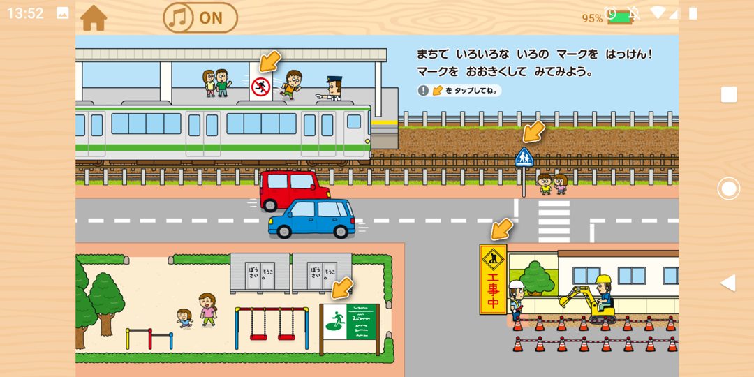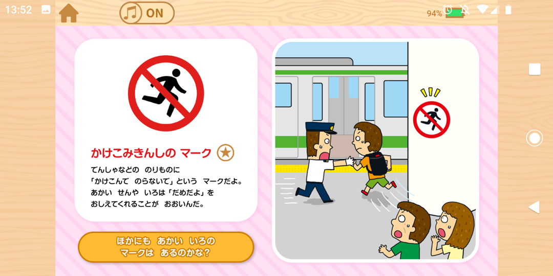 保育教材アプリ「いっしょによむぞう」シリーズの『なんのマークかな?』です。いろいろなマークを楽しみながら学べます。