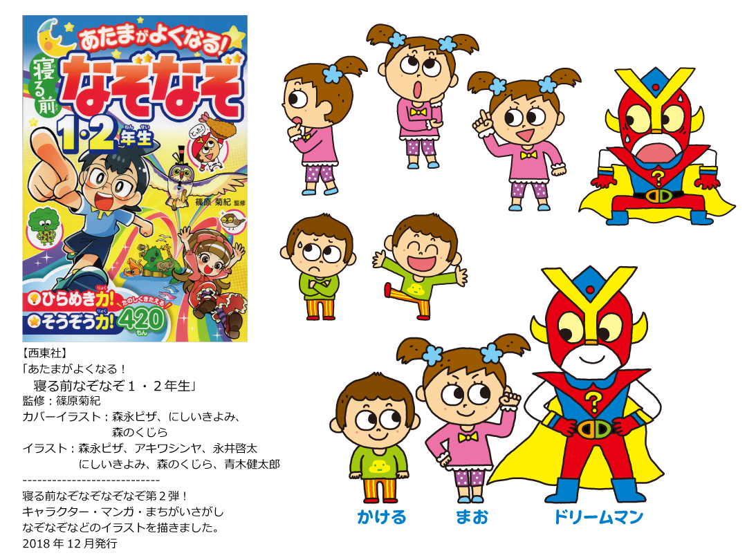 寝る前なぞなぞなぞなぞ第2弾!キャラクター・本文イラスト描きました。