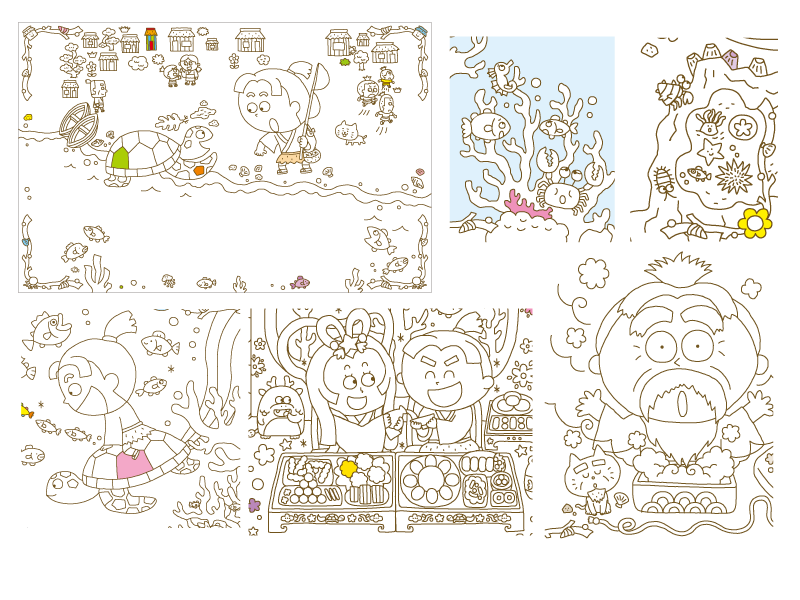 ぬりえ・あそび・よみきかせができる「ぬりえほん」。