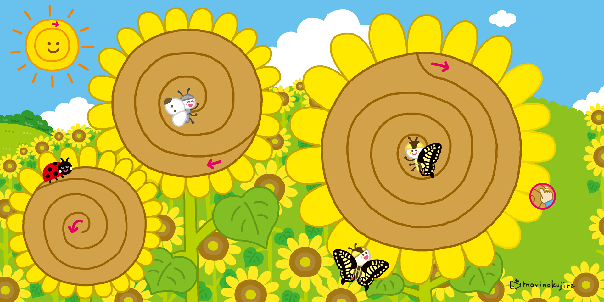 「えほんであそぼ」コーナーの指でひまわりをなぞるページの絵を描きましたよ。