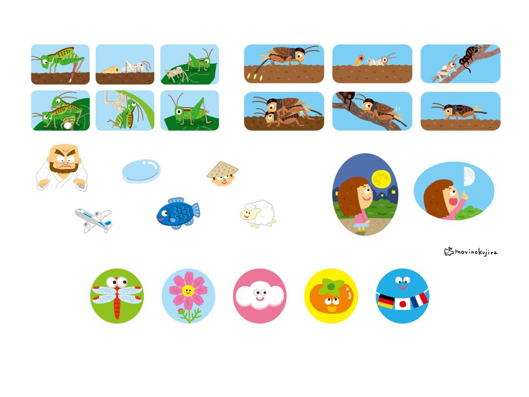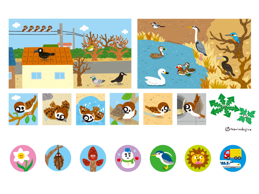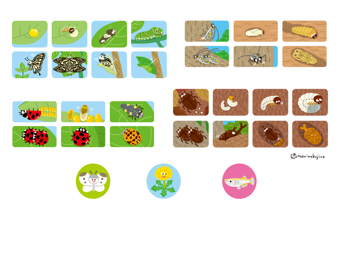 生きものや植物のアイコンや、虫たちの育ち方を年3回分描きました。