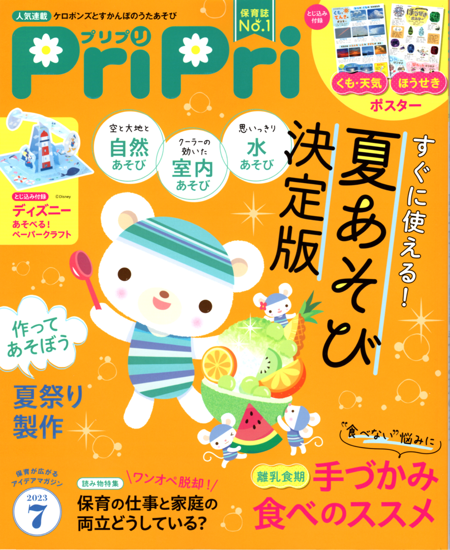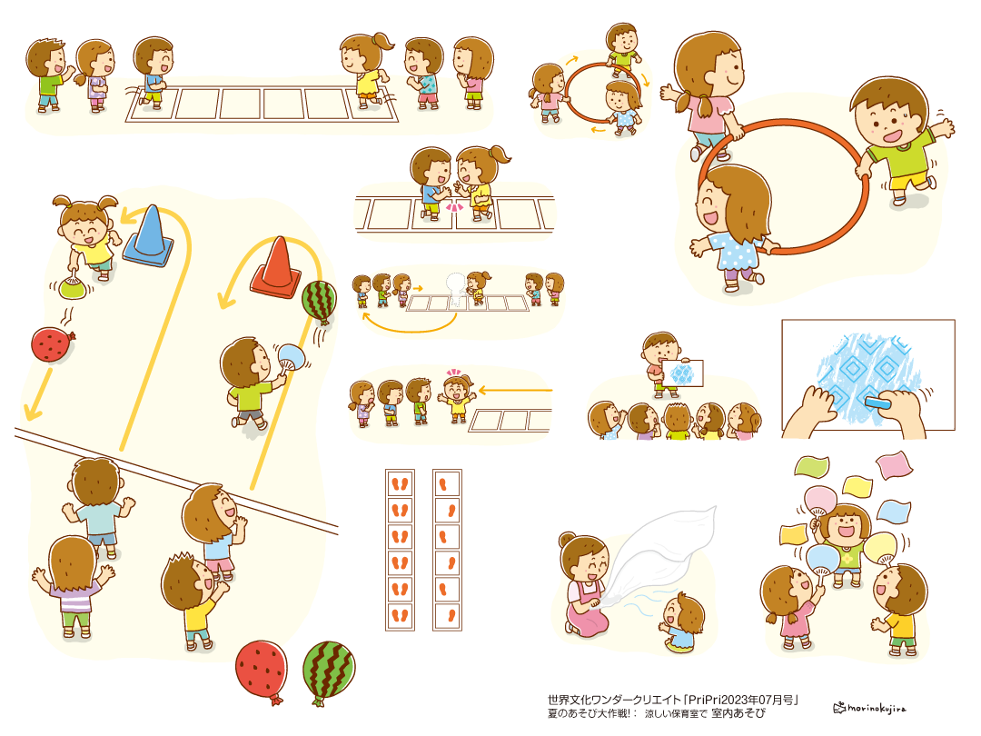 【保育イラスト】世界文化ワンダークリエイト『PriPri 2023年07月号:涼しい保育室で 室内遊び』
