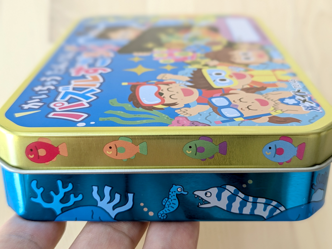 銀色の缶に色をつけてあります。白引き(下地に白で印刷)してないところはキラキラしてます。