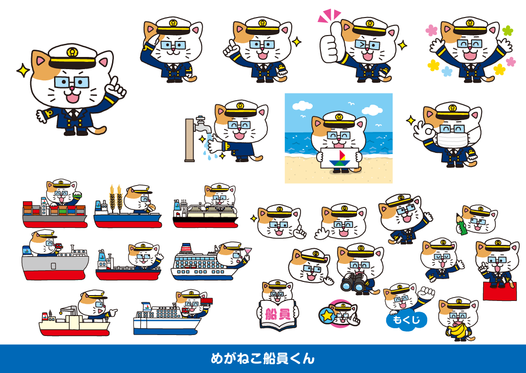 【教材イラスト】日本海事広報協会『ぼくとわたしのシップガイド』と『めがねこ船員』くん