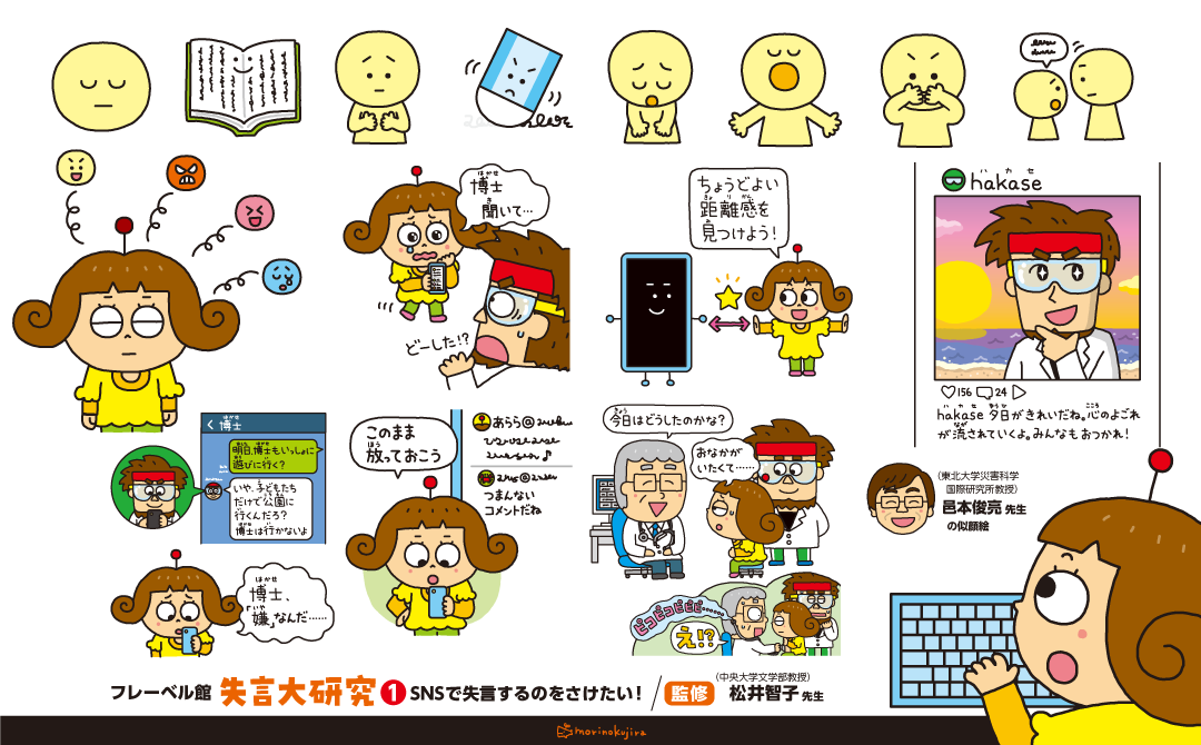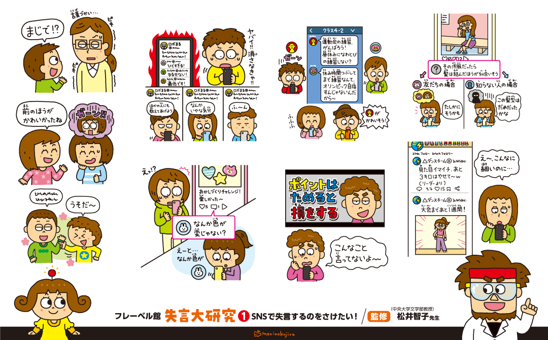 失言に関する図書館用児童書のキャラクター・マンガ・イラスト1式描きました!