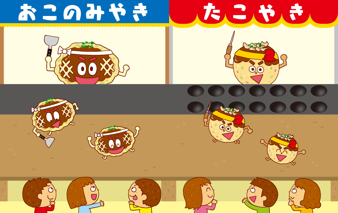 おこのみやきとたこやきの食育ページのイラスト描きました。